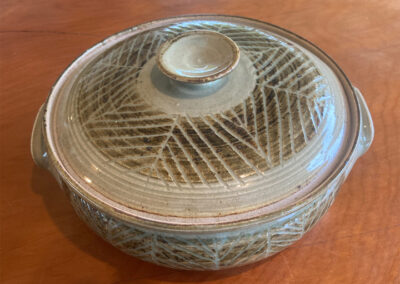 We moved to the Tapu Valley on the Coromandel around 1980 as our family grew, and my intention to continue potting was put on hold while I built our house. Meanwhile cheap ceramic imports flooded into New Zealand and the game changed. A flood of a different type littered the river terraces of our land with headlogs left in the bush by early timber men and I entered a new phase working with figured kauri making furniture as Square Kauri Construction. And then in the early 2000s to Parua Bay where I purchased a gas kiln and re-awoke to the joy of clay and fire like some latter day Rip van Winkle. I’m back in the Leach tradition making high-fired domestic stoneware and porcelain with celadon, copper red and ash glazes – designed to be functional and enjoyed in daily use.